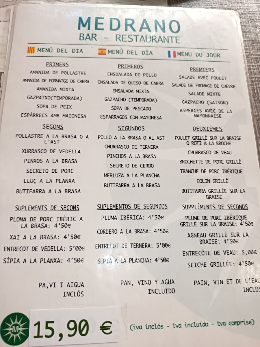 Welcome to Medrano Bar Restaurant, a hidden gem located in La Jonquera, Girona, Spain. This delightful eatery offers a vibrant atmosphere paired with a menu that highlights traditional Catalan flavors. Guests rave about the generous portions, especially the mixed fish and seafood platter, which is a must-try for seafood lovers. Customers frequently mention the delicious homemade wines and the standout patatas bravas, making every meal a culinary adventure.